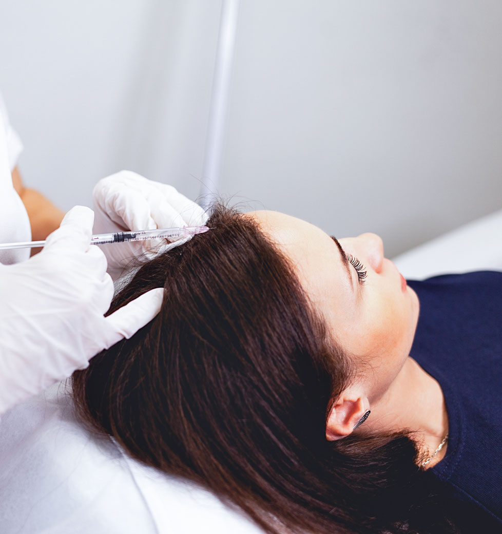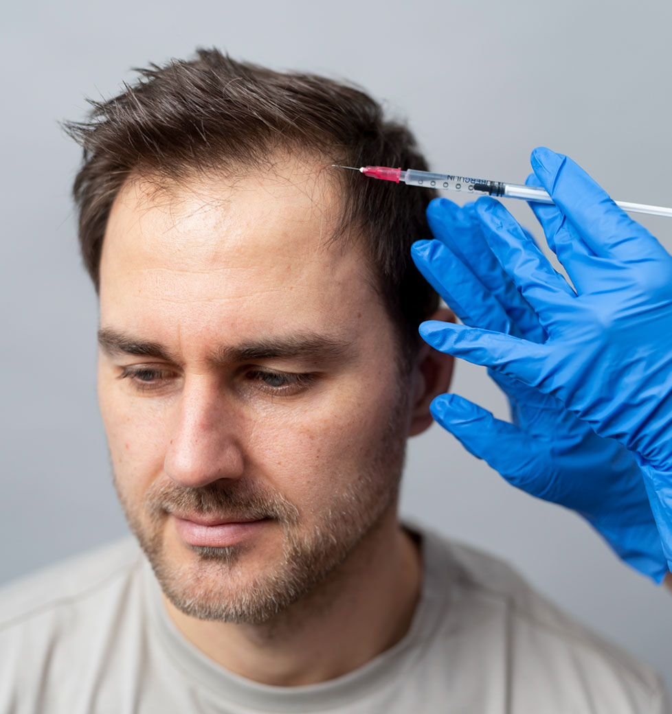 Platelet-rich plasma (PRP) is a treatment that uses the patient’s own blood to promote hair growth. Blood is drawn from the patient and then processed to extract the platelets, which contain growth factors that promote cell growth and repair. The PRP is then injected into the patient’s scalp in the areas where hair loss is occurring.