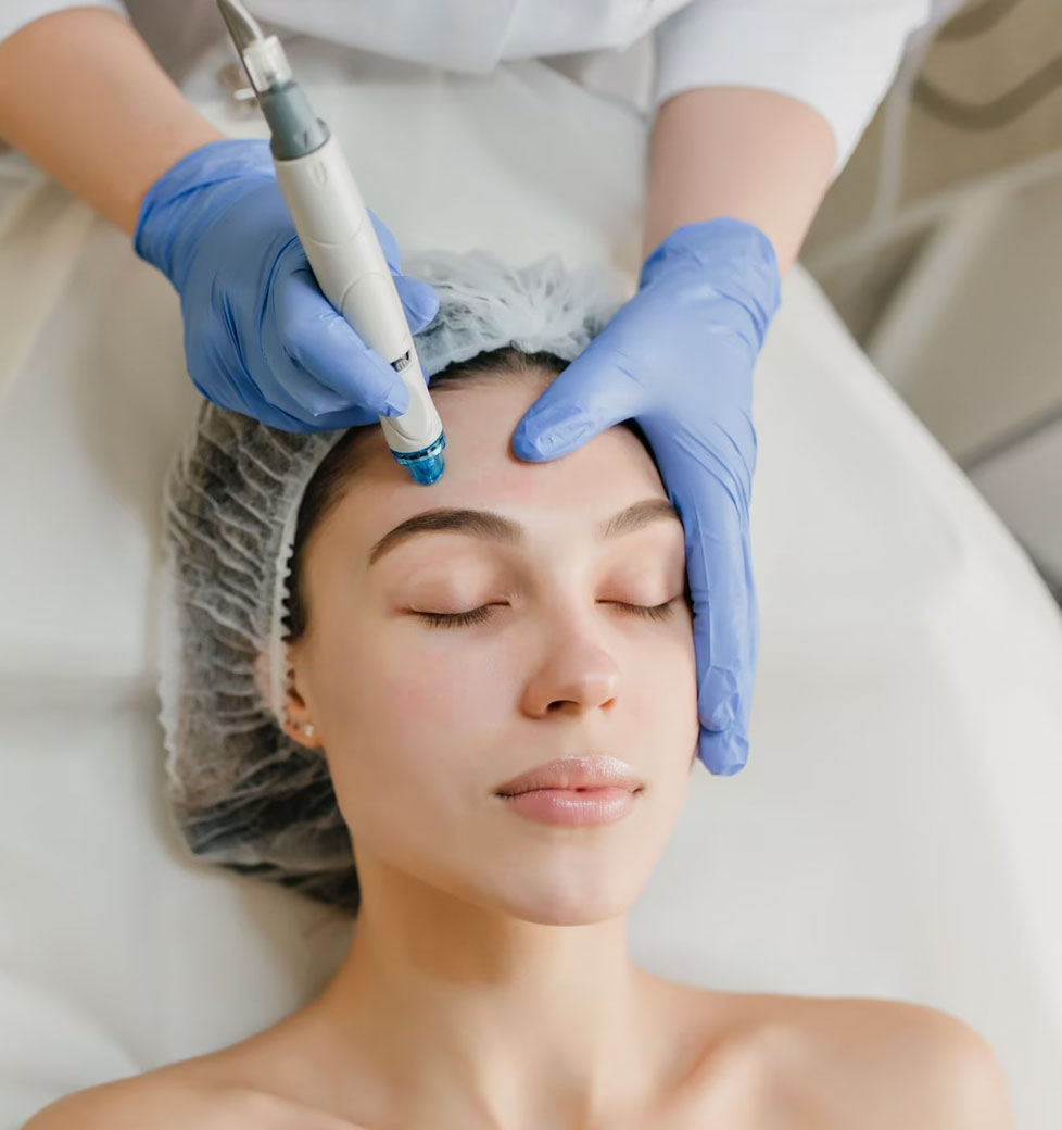 4 sessions of microneedling and subcutaneous injections to face and neck with our Emcyte Absolute Gold PRP.